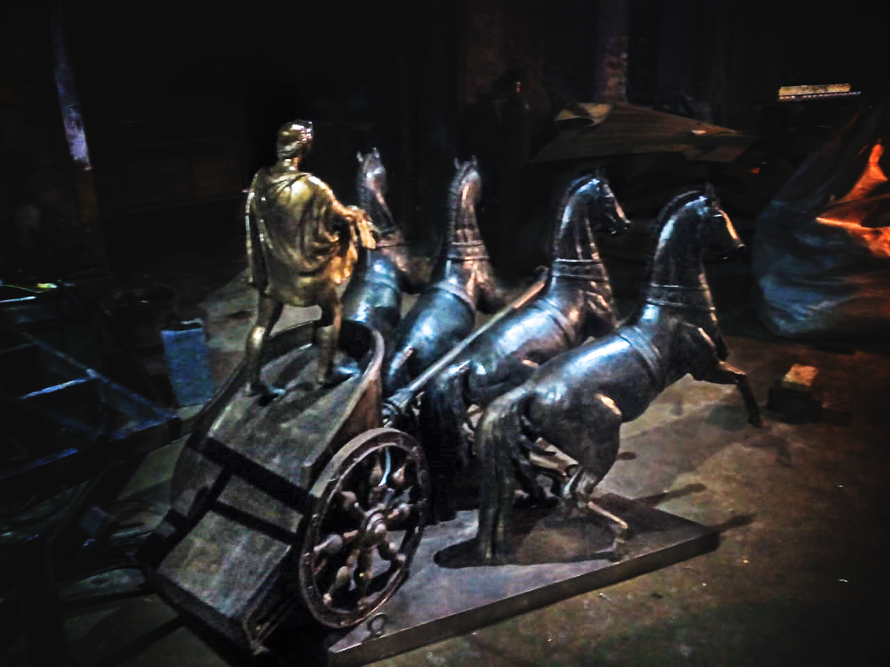 Копия скульптуры "Квадрига Аполлона"Размеры: 1.5х3мМатериал: бронза, покрытая патиной.