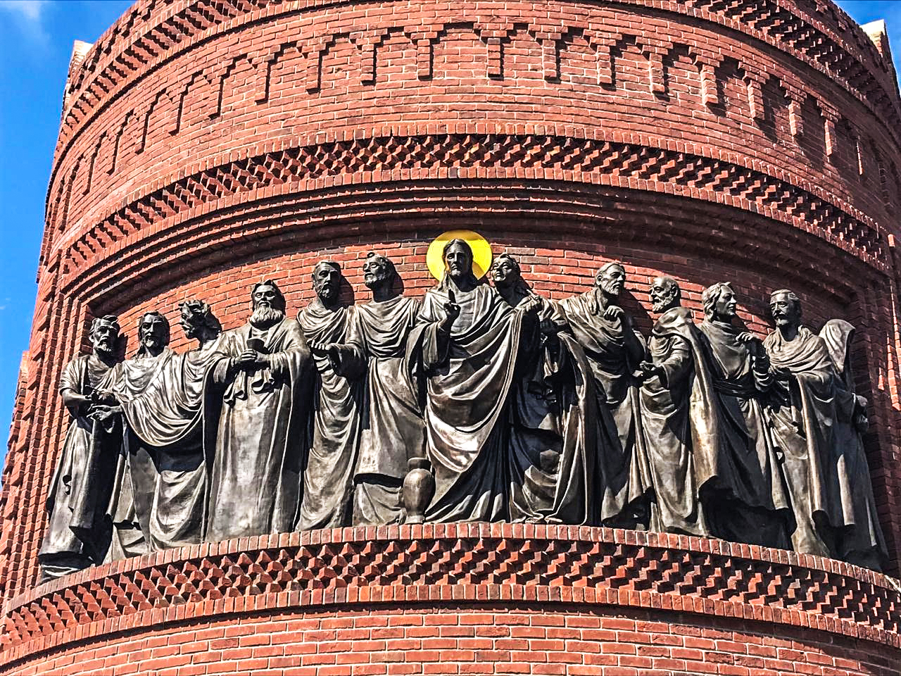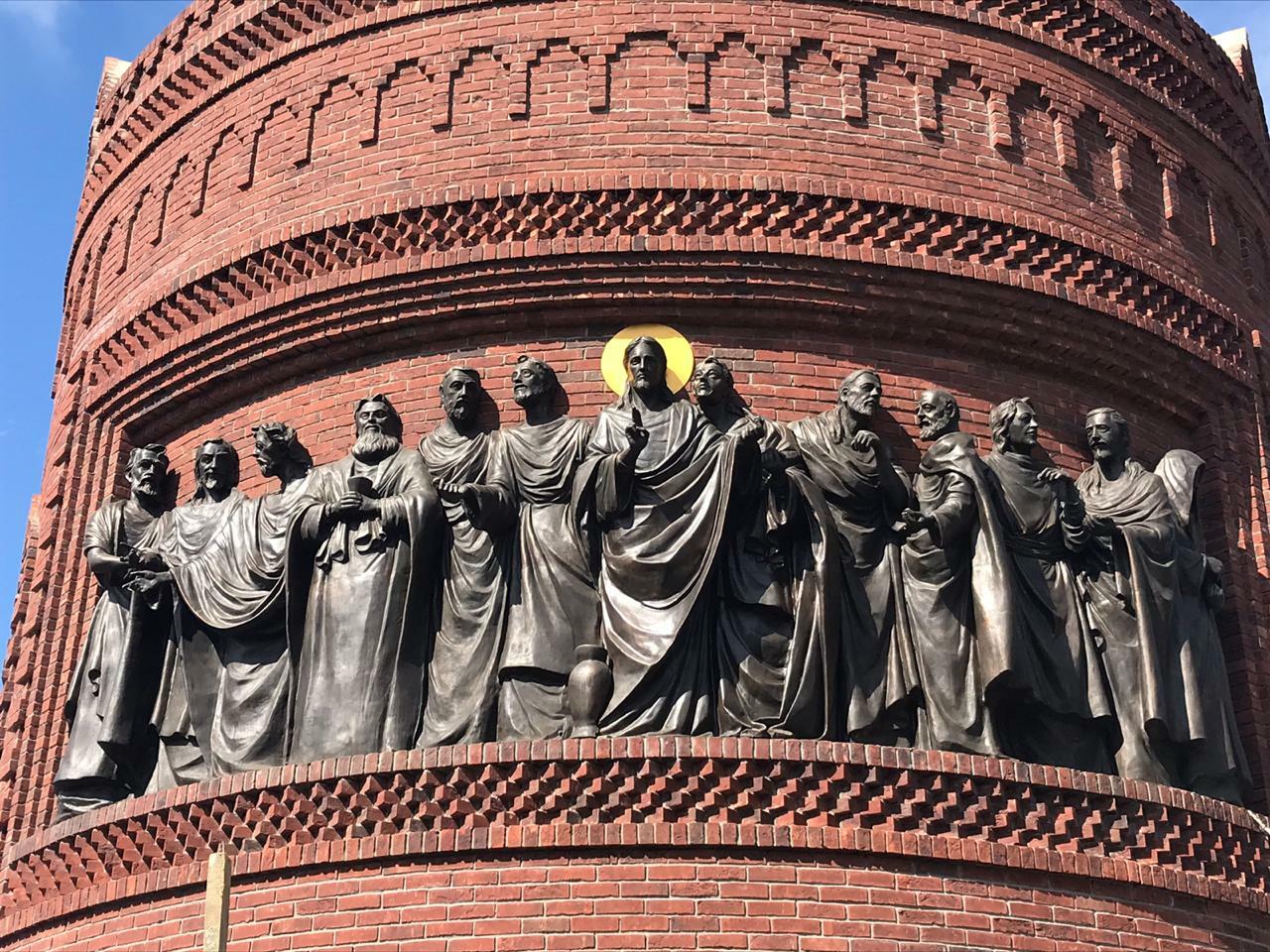 Скульптурная Композиция "Иисус и двенадцать Апостолов"Размеры: 7х2.5мМатериал: бронза, пократая патиной.
