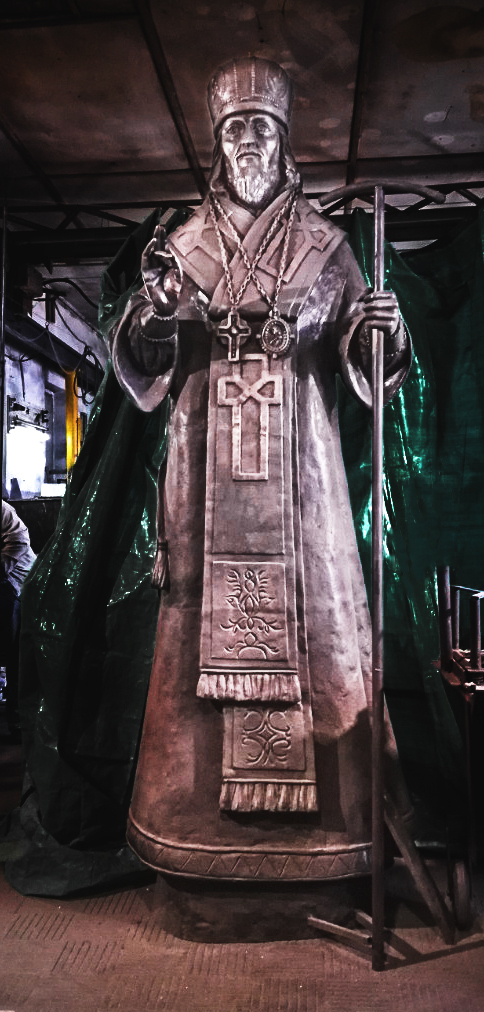 Святитель Дмитрий Ростовский.Размеры: 3мМатериал: бронза, покрытая патиной.Скульптор Сайченко И.