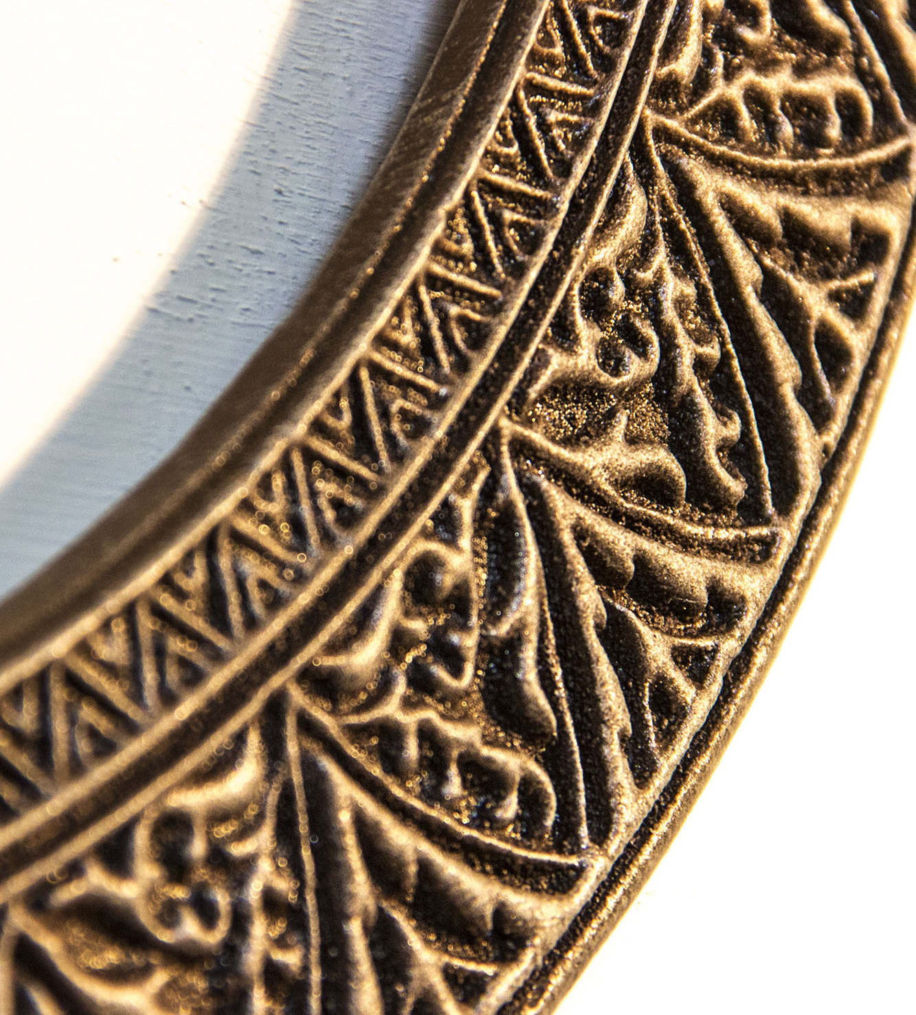 Зеркала нашего производства, рамы которых отлиты из высококачственного алюминия, что делает их прочными и одновременно легкими. Окрашены ручной росписью экологичными красками на водной основе, без содержания растворителей.